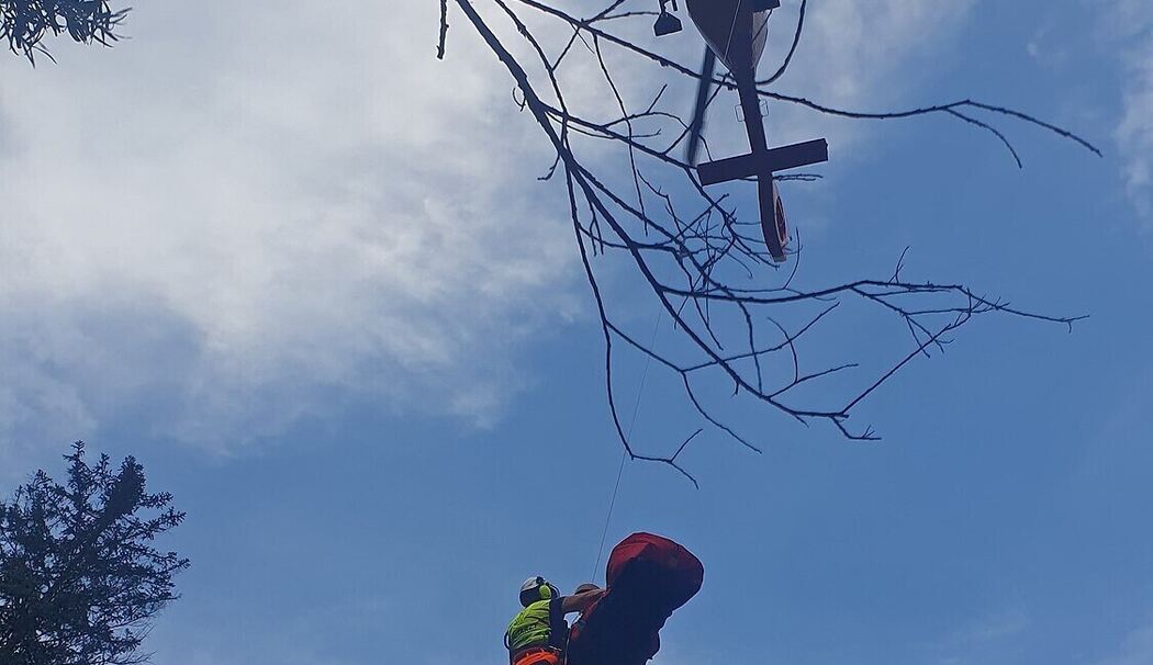 Weiter gings dann um 13.40 Uhr in der Aschauer Klamm, wo sich eine 62-jährige Tennengauerin im Abstieg mit einer Wandergruppe sehr schmerzhaft das Knie verdreht hatte. Die Bergwacht wollte die Rettung zunächst bodengebunden durchführen, forderte dann aber wegen des abgelegenen Einsatzorts nur knapp unterhalb der Klause »Christoph 14« nach, der seinen Notarzt per Winde bei der bereits versorgten und im Luftrettungssack gesicherten Patientin absetzte, sie dann mit der Winde aufnahm und zum Klinikum Traunstein flog. Elf Bergretter der Bereitschaften Bad Reichenhall und Teisendorf-Anger waren gute zwei Stunden im Einsatz.