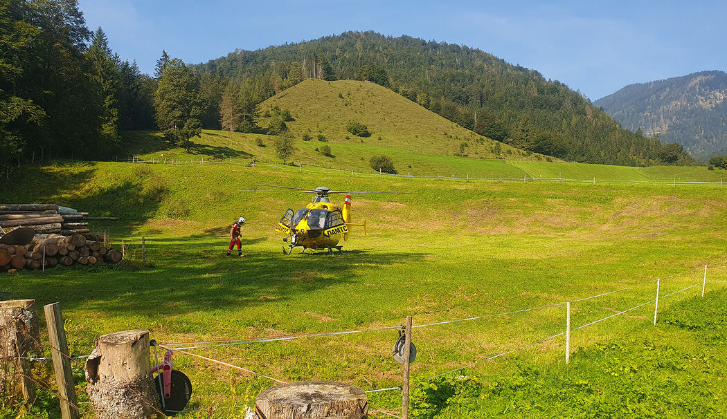 Am Sonntagvormittag ging gegen 10.30 Uhr ein Notruf vom Bogenhorn ein, wo sich ein 47-jähriger Mann und seine 13-jährige Tochter aus dem Landkreis München in rund 1 100 Höhenmetern im Abstieg verstiegen hatten. Das Duo hatte am Sonntaghorn übernachtet und wollte dann auf einer längeren Tour über das Bogenhorn zurück nach Melleck ins Tal, wobei es die Forststraße nicht mehr finden konnte. Da ein bodengebundener Einsatz wegen des sehr abgelegenen Einsatzorts zu aufwendig geworden wäre, forderte der Einsatzleiter den Traunsteiner Rettungshubschrauber »Christoph 14« nach, der die Verstiegenen dann zusammen mit zwei Reichenhaller Bergrettern per Winde rettete.