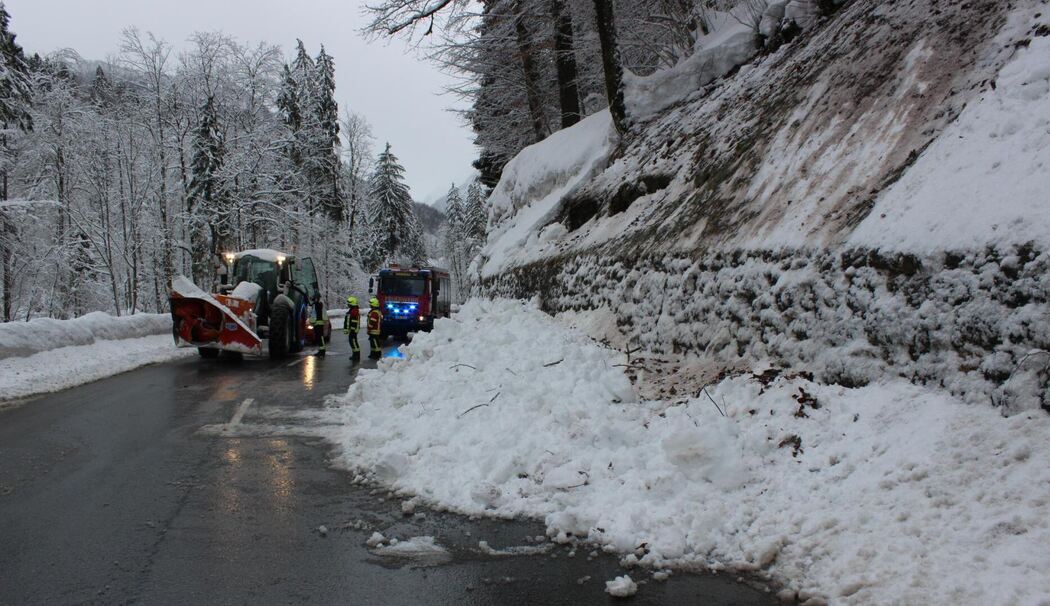 Ramsau (av) – Eine kleine Lawine hat sich am Dienstag gegen 11 Uhr an einem Hang oberhalb der B undesstraße B305 vor dem unteren Felsentor gelöst.