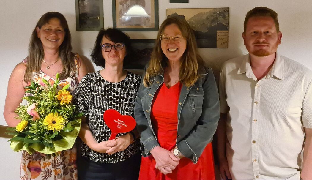Bei den anschließenden Neuwahlen entschieden sich die Delegierten für das Modell vom Co-Vorsitzenden, das bereits in Bund und Land im Einsatz ist. Zukünftig teilt sich Susanne Aigner den Vorsitz mit Silke Spitzauer aus Laufen. Die selbstständige Berufsbetreuerin und Mutter von zwei Kindern war in den letzten Jahren bereits eine der stellvertretenden Vorsitzenden und will nun gemeinsam mit Susanne Aigner für eine starke sozialdemokratische Vertretung in den kommunalen Parlamenten arbeiten. Die neuen Vorsitzenden wurden jeweils einstimmig bei einer Stimmenthaltung gewählt. Auch bei den weiteren Vorstandswahlen zeigten sich die Delegierten der Ortsvereine mit einstimmigen Wahlergebnissen in großer Geschlossenheit. Als neue stellvertretende Vorsitzende wurde die Diplom-Finanzwirtin (FH) und passionierte Imkerin Kati Huber aus Berchtesgaden gewählt. Ebenfalls neu in der Aufgabe als stellvertretender Vorsitzender ist der staatlich geprüfte Kinderpfleger und stellvertretende Kreisvorsitzende der Arbeiterwohlfahrt, Markus Aicher aus Teisendorf. Mit Günter Wolf aus Anger und Hans Metzenleitner aus Bischofswiesen wurden erfahrene Kräfte mit den Aufgaben als Kassierer und Schriftführer betraut. Als Vertreterinnen und Vertreter der Arbeitsgemeinschaften wurden gewählt: Rosina Rau aus Saaldorf-Surheim für die AG 60plus (Senioren), Margret Sturm-Wiersing aus Ainring für die AsF (Frauen), Güldane Akdemir aus Bad Reichenhall für Arbeitnehmer und Manfred Soraruf aus Ainring für SPDqueer. Neu mit dabei ist Benjamin Zastrow aus Laufen, der als Ansprechpartner für die Jusos (Jugend) gewählt wurde. Als weiterer Beisitzer kümmert sich Bernhard Rau aus Saaldorf-Surheim um ökologische Themen. Auf Bezirksebene wird die SPD Berchtesgadener Land zukünftig von Susanne Aigner, Silke Spitzauer und Markus Aicher vertreten, als Delegierte zum Landesparteitag wurde Silke Spitzauer gewählt.