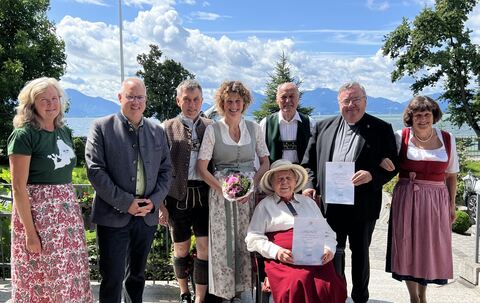 Auch Petrus hatte perfekt mitgespielt. Bei strahlendem Sonnenschein und weißblauem Himmel wurde der Tag gefeiert, wenngleich es auch brütend heiß war. Pfarrer Dr. Florian Schomers zelebrierte im Strandbadgelände den Festgottesdienst am Freialtar vor malerischer Kulisse mit dem Chiemsee im Vorder- und der Bergkette im Hintergrund. Die Chiemseeschifffahrt schickte mit dem »Ludwig Fessler« das Nostalgieschiff auf die Reise, ein zusätzlicher Hingucker für die Kirchenbesucher.