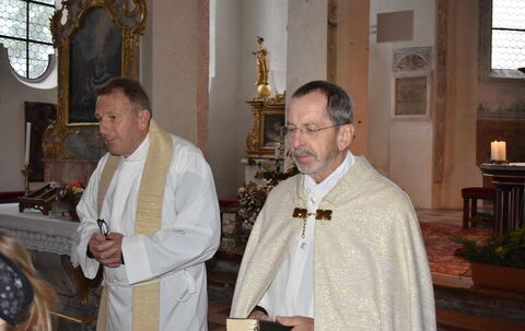 Es schweifte auf seine frühere Wahlheimat Tirol aus. »Brauchtum ist etwas Besonderes!« Dazu gehöre das Gewand. Wenn es nicht passt, sagt der Tiroler »Der Fak mit der Schelln« – das Ferkel mit der Schelle. Darum sollte das Gewand erhalten bleiben, das auch zusätzlich zum Glauben gehört. Auch die Ministranten verrichteten den Altardienst in Tracht. Die Predigt war humorvoll gestaltet, sodass die Gläubigen spontan Applaus spendeten. Die anschließenden Fürbitten wurden von den Jugendlichen und Aktiven des Vereins vorgetragen.
