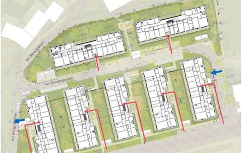 Der Plan sieht ebenso eine große Tiefgarage unter den fünf vorderen Gebäuden vor sowie eine separate mit Ein- und Ausfahrt an der Straße Am Meislgraben. »Es werden 100 Stellplätze in den Tiefgaragen vorhanden sein«, kündigte Schulze an. An den Häusern sollen 32 Stellplätze für Besucher entstehen.