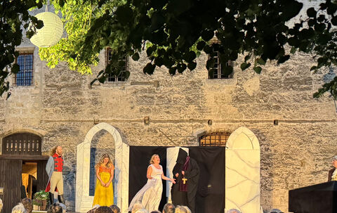 Shakespeare passt sehr gut in das Ambiente des Tittmoninger Burghofs – zu diesem Schluss kamen alle, die sich auf die englische Original-Version von »Much ado about nothing« oder »Viel Lärm um nichts« eingelassen hatten. Die ausdrucksstarke und mitreißende Performance der Theatergruppe der »American Drama Group« führte nach vielen Irrungen und Wirrungen – und gut überstandenen Windstößen – zu dem ersehnten »Happy End«, sowohl für die Figuren als auch für das Publikum. Einige kräftige Böen konnten weder die aufgebauten Kulissen noch das Ensemble aus der Ruhe bringen.