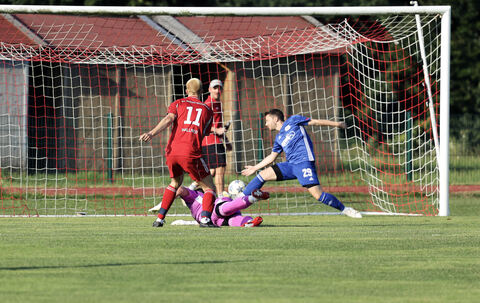 Anders in der zweiten Hälfte: Auch hier saß der erste Angriff, diesmal aber für den SVS. Axthammer zog einen Freistoß aus dem rechten Halbfeld nach innen, Alex Seil war zur Stelle und überwand Morrison mit einem wuchtigen Kopfball halbhoch neben den rechten Pfosten (47.). Auf der Gegenseite ließ sich Fritz bei einem abgerissenen Ball von Albert Reiter nicht überraschen, er lenkte das Leder zur Ecke (53.).