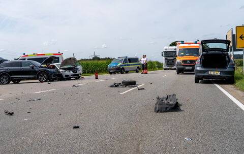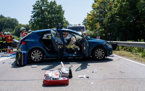 Nach bisherigen Erkenntnissen wurden bei einem Zusammenstoß zweier Autos mehrere Personen teils schwer verletzt. An der Unfallstelle sind Polizei, Rettungsdienst und Feuerwehr im Einsatz.