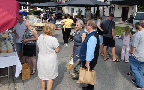 Hoch im Kurs standen am Marktplatz der Kaffee und die Kuchen der Ortsbäuerinnen. „Es läuft gut, obwohl es so warm ist“, bilanzierte die Erste Ortsbäuerin Christl Stefanutti. Nun hoffen alle Beteiligten, dass am 25. September auch der Bauernmarkt zum Erntedank stattfinden kann. Den großen Herbstmarkt mit Flohmarkt, der am 12. September angesetzt war und gewöhnlich unzählige Besucher aus nah und fern anzieht, hat die Gemeinde bereits wie im Vorjahr abgesagt. Auch die letzten beiden Maimärkte konnten coronabedingt schon nicht stattfinden.