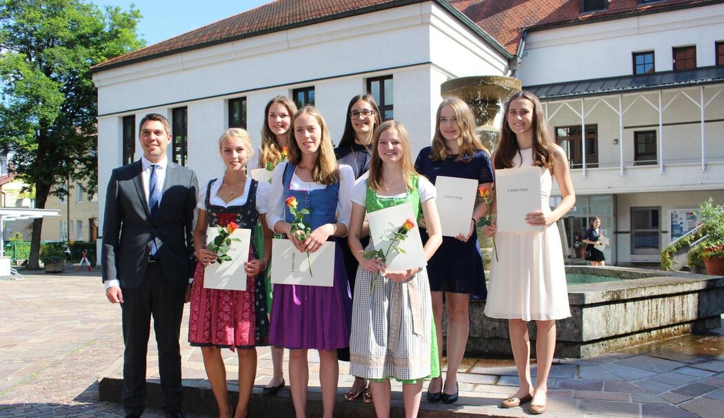 Ihre Schulzeit mit einem Notenschnitt von 1,2 beendeten: Andreas Felber aus Fridolfing (Berufliche Oberschule Traunstein), Eva Haindl aus Traunreut (Johannes-Heidenhain-Gymnasium), Anna Haitzer aus Ruhpolding (Chiemgau-Gymnasium), Marina Heinrich aus Pittenhart (Berufliche Oberschule), Veronika Klauser aus Palling (Berufliche Oberschule), Gaby Lee aus Nußdorf (Landschulheim Schloss Ising), Matthias Wallner aus Teisendorf (Chiemgau-Gymnasium) und David Wimmer aus Traunstein (Chiemgau-Gymnasium).