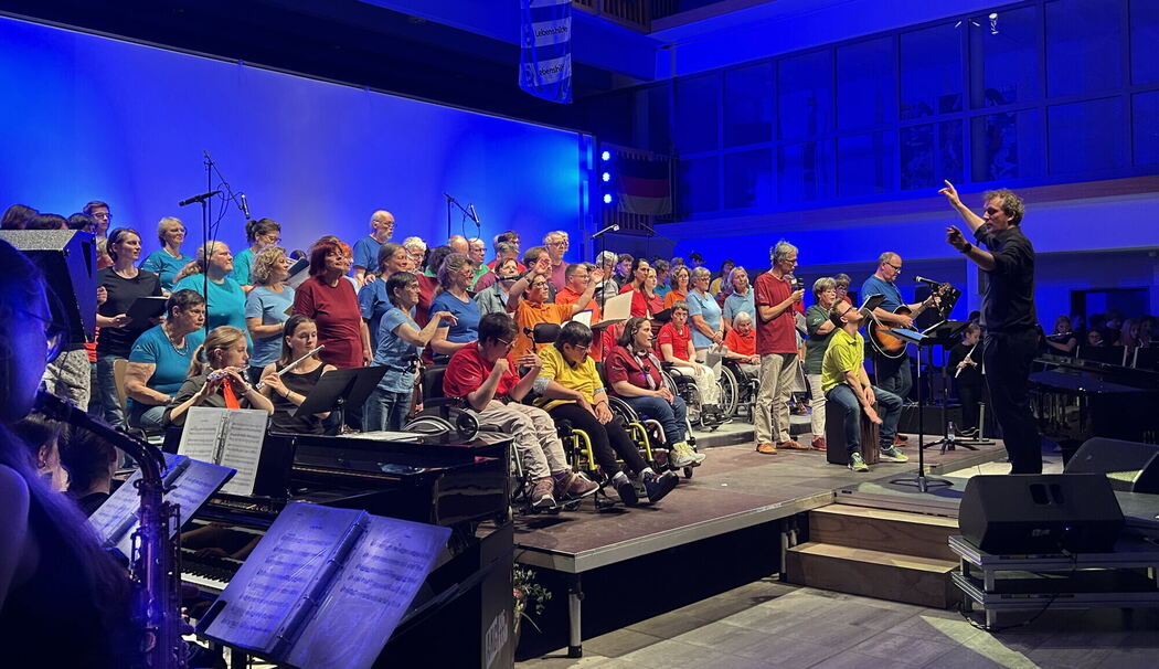Etwas Einmaliges und Besonderes fand beim diesjährigen Eröffnungskonzert des »Musiksommers zwischen Inn und Salzach« in der vollbesetzten Aula des Traunsteiner Annette-Kolb-Gymnasium statt: Zum ersten Mal in der 50-jährigen Geschichte des »Musiksommers« ging ein inklusives Konzert über die Bühne, ausgerichtet von der AKG-Big Band unter der Leitung von Felix Hagenauer und dem inklusiven Projektchor »Insieme« mit Chorleiter Manfred Müller.