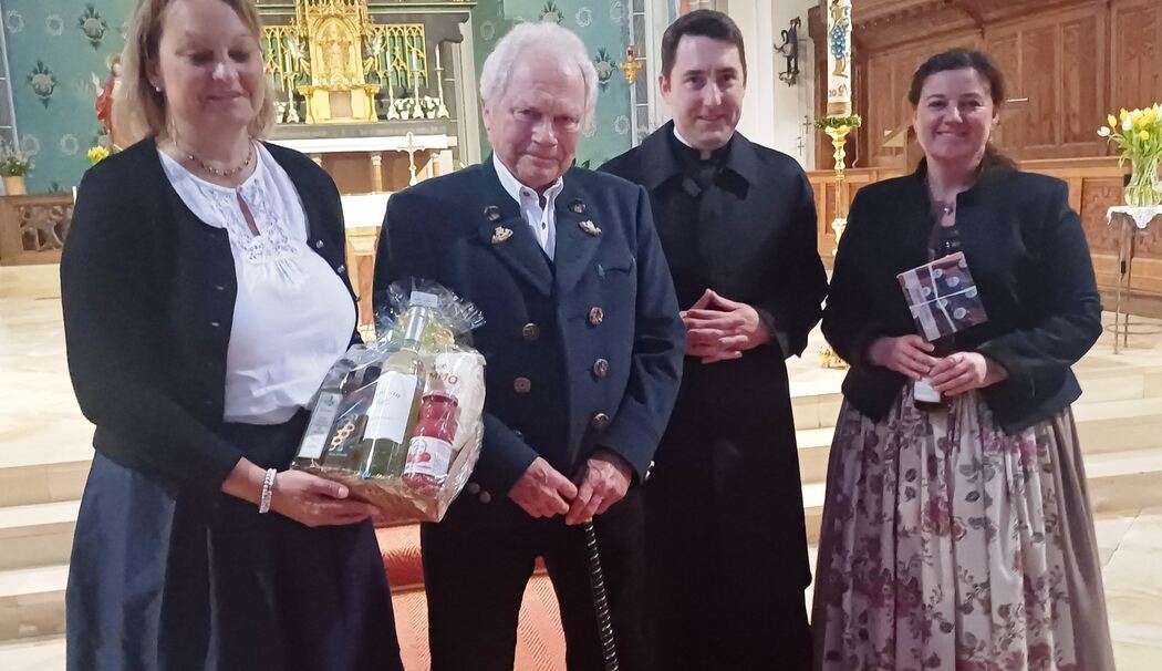 Während des Konzerts gab es eine besondere Ehrung. Christian Dengler, der als Kirchenmusiker und Organist die Orgel in St. Nikolaus 55 Jahre lang gespielt hatte, wurde mit Geschenken und vielen lobenden Worten für seinen unermüdlichen Einsatz gewürdigt. Dengler wurde 1937 in Dresden geboren und absolvierte seine Ausbildung in Regensburg. Seit April 1970 war er Lehrer in Übersee, dann bis zu seiner Pensionierung Schulleiter in Marquartstein und weit länger Organist, Dirigent der Blaskapelle und Leiter des Kirchenchors in Übersee, wo er der Kirchenmusik immer wieder neue Impulse gab.