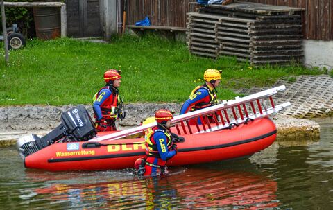 Der erste Einsatz des Nachmittags war gegen 16.30 Uhr im Bereich Erlstätt alarmiert worden. Der Ortskern stand etwa 40 Zentimeter unter Wasser. Die Feuerwehr war mit 25 Einsatzkräften dabei, den Bereich zu sichern und eine Umleitung einzurichten.