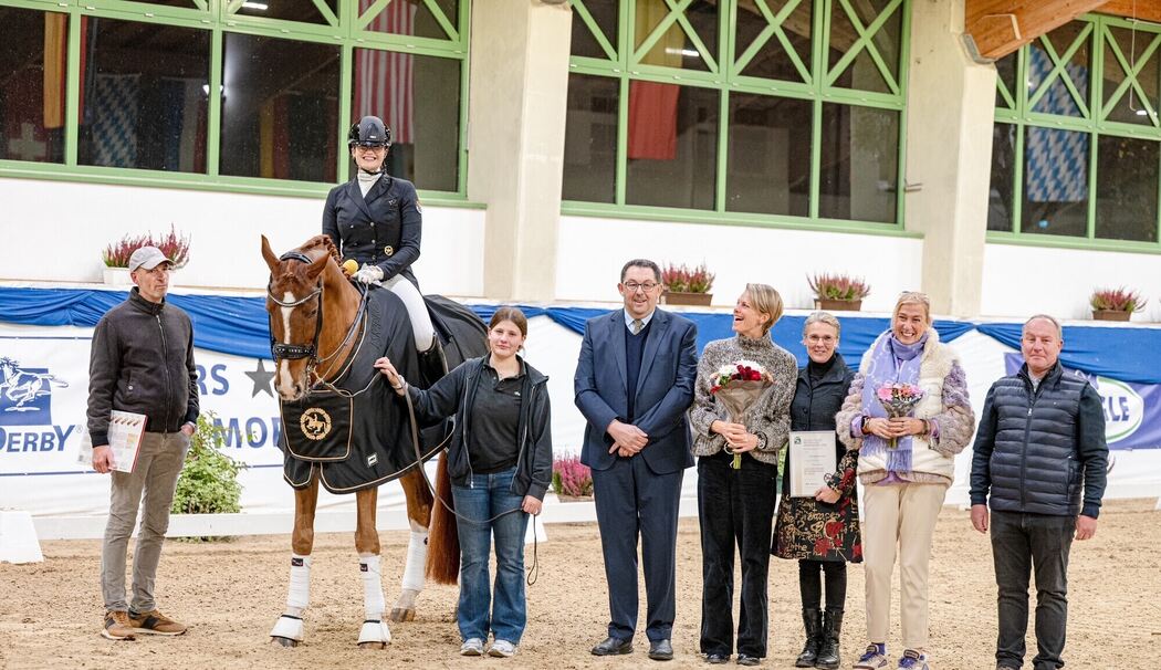 Es ist ein Meilenstein für viele talentierte Reiter: Das Goldene Reitabzeichen. Zehn Siege auf S-Niveau sind dafür nötig – Angelina Sessler erhielt nun beim Dressurturnier auf Gut Ising die Auszeichnung überreicht.