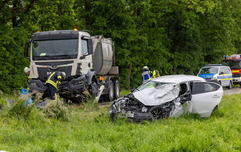 Die hinzugerufenen Rettungskräfte konnten den Mann schnell aus seinem Fahrzeug befreien. Nach medizinischer Erstversorgung wurde er vom BRK ins Klinikum nach Traunstein gefahren.
