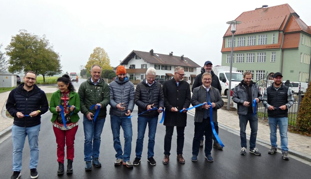 Grabenstätt – Autos und Lastwagen fahren schon seit einiger Zeit wieder durch Erlstätt. Nun wurde die Grabenstätter Straße, also die Kreisstraße TS 3 nach rund zweimonatiger Bauzeit auch offiziell für den Verkehr freigegeben. Zu diesem Anlass wurde auf Höhe des frisch sanierten Alten Erlstätter Schulhauses symbolisch ein blaues Band durchgeschnitten.
