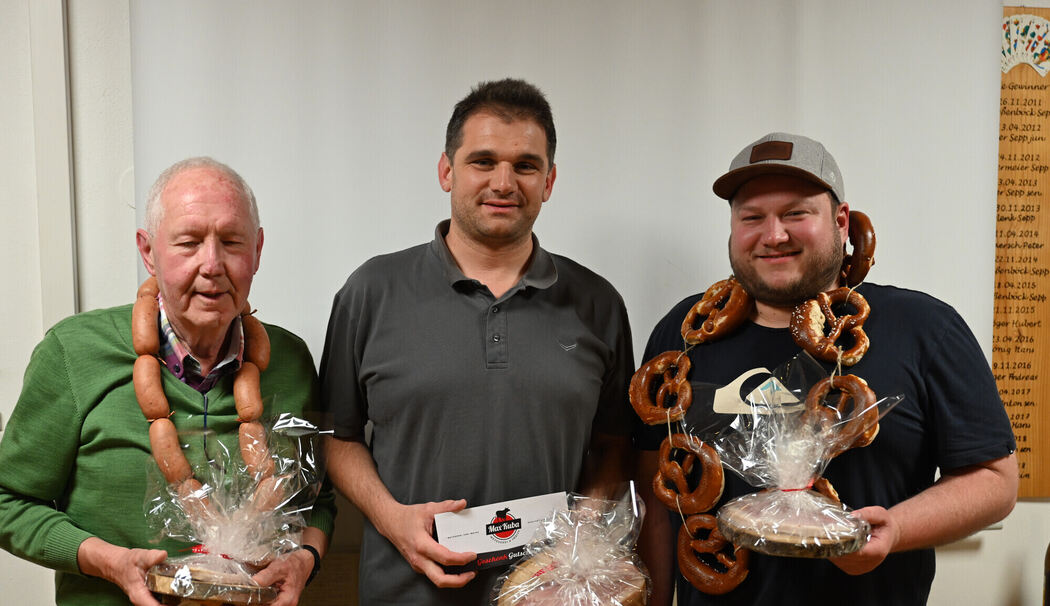 Alle drei waren jeweils auch Tischerste an ihren Tischen. Die weiteren Tischersten waren Markus Kreuz mit 132 Punkten, Martin Plenk mit 131 Punkten, Altbürgermeister Rudi Jantke mit 102 Punkten sowie Hubert Höger mit 98 Punkten.