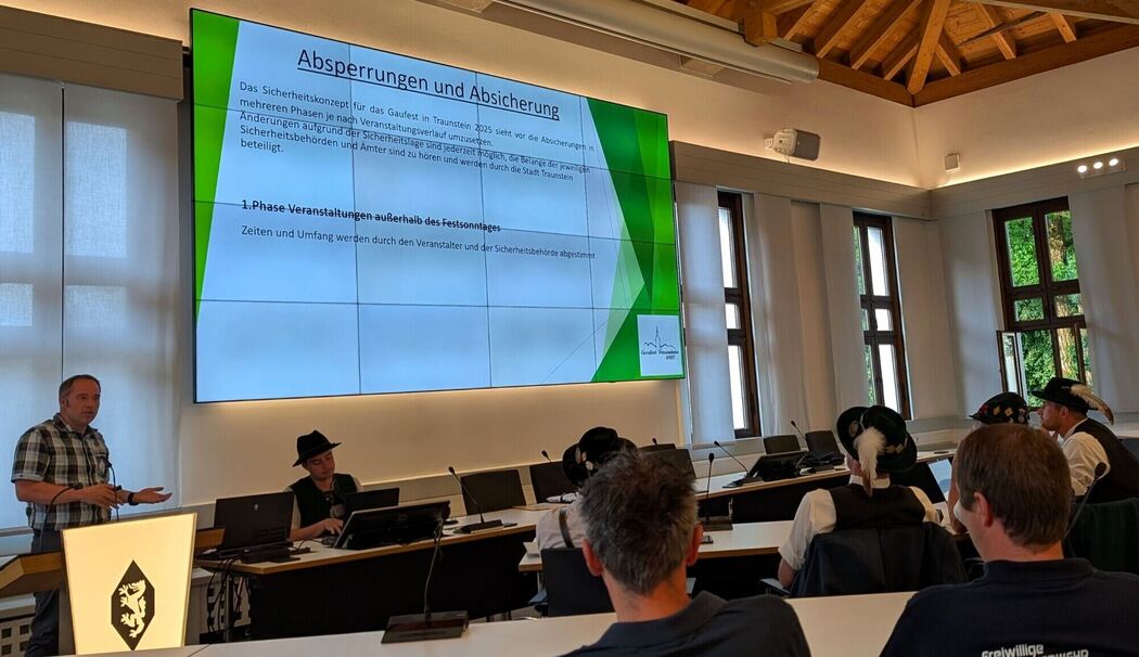 Traunstein – Wenn das Gautrachtenfest in Traunstein vom 18. bis 27. Juli über die Bühne geht, bedeutet das einen Großeinsatz für die Feuerwehren und Rettungskräfte. Die Veranstalter rechnen mit rund 8000 Trachtlern des Gauverbands I sowie mit etwa 12 000 Zuschauern, die am Festsonntag, 20. Juli, in die Große Kreisstadt kommen. Damit alles reibungslos über die Bühne geht, wurde viel Zeit in die Planung der Einsatz- und Sicherheitsstruktur investiert. Im Sitzungssaal des Landratsamts wurden nun die letzten Abstimmungen getroffen. Neben den Festvereinen aus Hochberg, Rettenbach und Traunstein mit Festleiter Simon Schreiber sind auch Mitarbeiter der Stadt, des städtischen Bauhofs, des Landratsamts sowie der Polizei in die Planungen eingebunden.