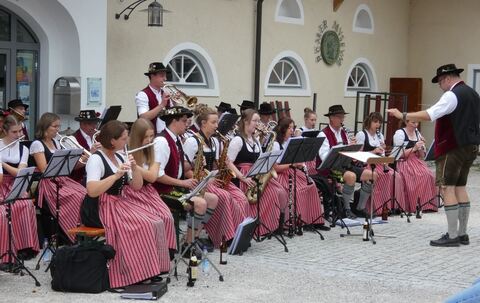 Nicht nur ihr Vorstand Max Meisinger war begeistert. Die aktiven Plattler begleitete Ziachspieler Franz Eckart junior. Jubel und Applaus waren allen Trachtlern sicher und man hat ihnen durchgehend angemerkt, wie sehr sie sich danach gesehnt hatten, endlich wieder vor Publikum aufzutreten. „Ohne Auftritte wird es schwierig sich fürs Proben zu motivieren“, gab Grabenstätts GTEV-Chef Fleischmann zu bedenken. Für die stimmungsvollen Klänge zwischendurch sorgten der Grabenstätter Dirndlgesang mit Theresa und Johanna Fleischmann und Marlene und Christina Hübner, die Grabenstätter Harfenistinnen Simone Daxenberger und Magdalena Eckart, das hiesige Duo Katharina Wiesholler (Harfe) und Franz Eckart (Ziach) und die Musikkapelle Grabenstätt um Musikvereinsvorstand Alois Wiesholler mit der „Fuchsgraben-Polka“ und der Polka „Ein halbes Jahrhundert“.