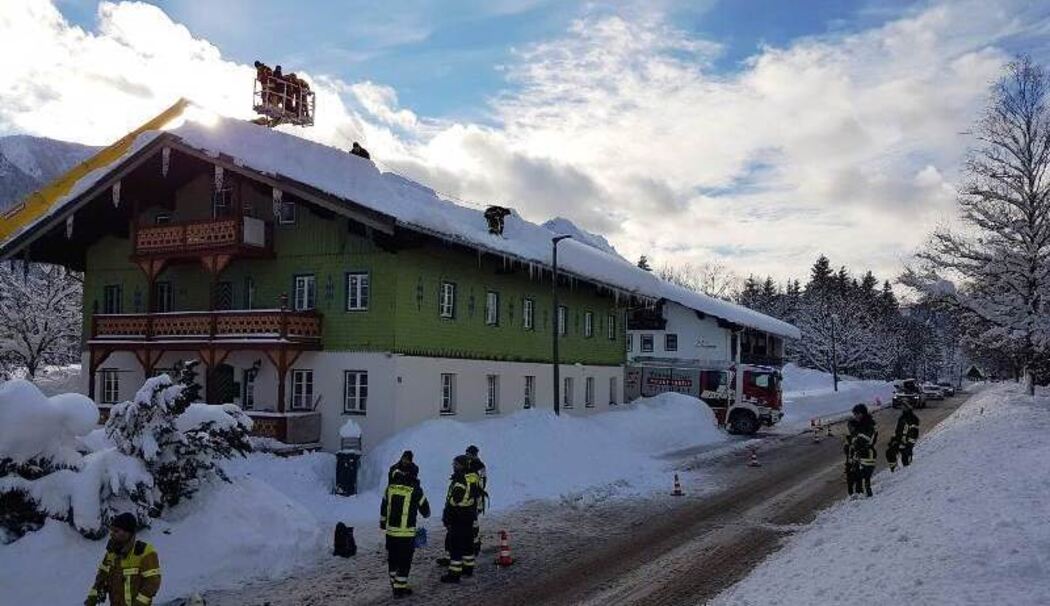 Zahlreiche Rettungskräfte sind heute in und um Reit im Winkl im Einsatz, um Dächer einsturzgefährdeter Gebäude von den Schneemassen zu räumen. In der Gemeinde sind aktuell die Bundesstraße 305 zwischen Seegatterl und Ruhpolding, die Straße von Reit im Winkl nach Kössen und die Winklmoos-Straße gesperrt.