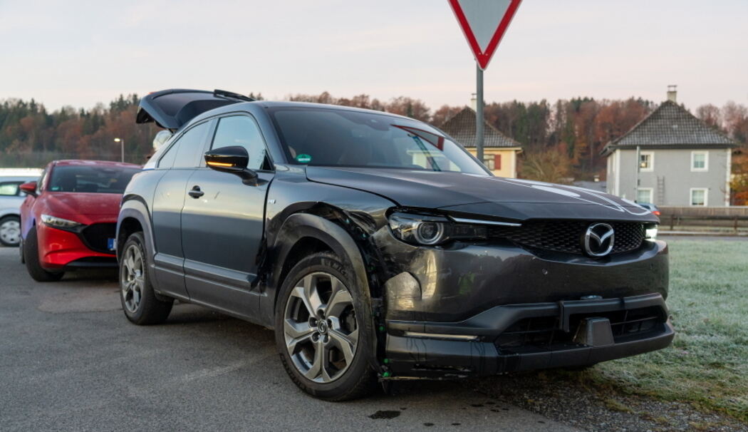 Beim Überqueren einer Kreuzung übersah er eine Frau, die mit ihrem Mazda von Hörpolding in Richtung Stein fuhr. Beide Fahrzeuge stießen zusammen.