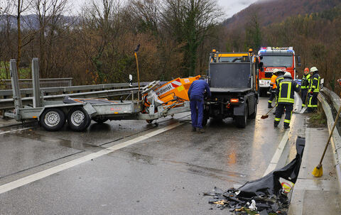 Die beiden Laster der Firma fuhren demnach hintereinander Richtung München auf der rechten Spur, als der vordere 34-jährige Fahrer sein Gespann wegen des Gefälles am Irschenberg abbremste. Sein gleichaltriger Kollege reagierte rechtzeitig, ein 41-jähriger Lastwagenfahrer erkannte die Situation laut Polizei hingegen zu spät. Durch die Wucht des Aufpralls wurde der Sattelzug auf den vor ihm fahrenden aufgeschoben. Der Fahrer des mittleren Lasters lenkte nach rechts und fuhr den Angaben zufolge lediglich den Außenspiegel des Transporters seines Kollegen ab.