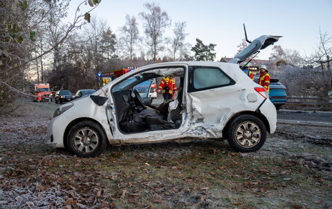 Beide Autos kamen von der Fahrbahn ab und touchierten mehrere Leitpfosten sowie eine Warnbake. Der25-Jährige wurde zur weiteren Behandlung ins Krankenhaus gebracht, während die 62-Jährige nicht ins Klinikum musste. Beide Fahrzeuge mussten abgeschleppt werden. Die Fahrbahn wurde von der Freiwilligen Feuerwehr Otting abgesichert und gereinigt.